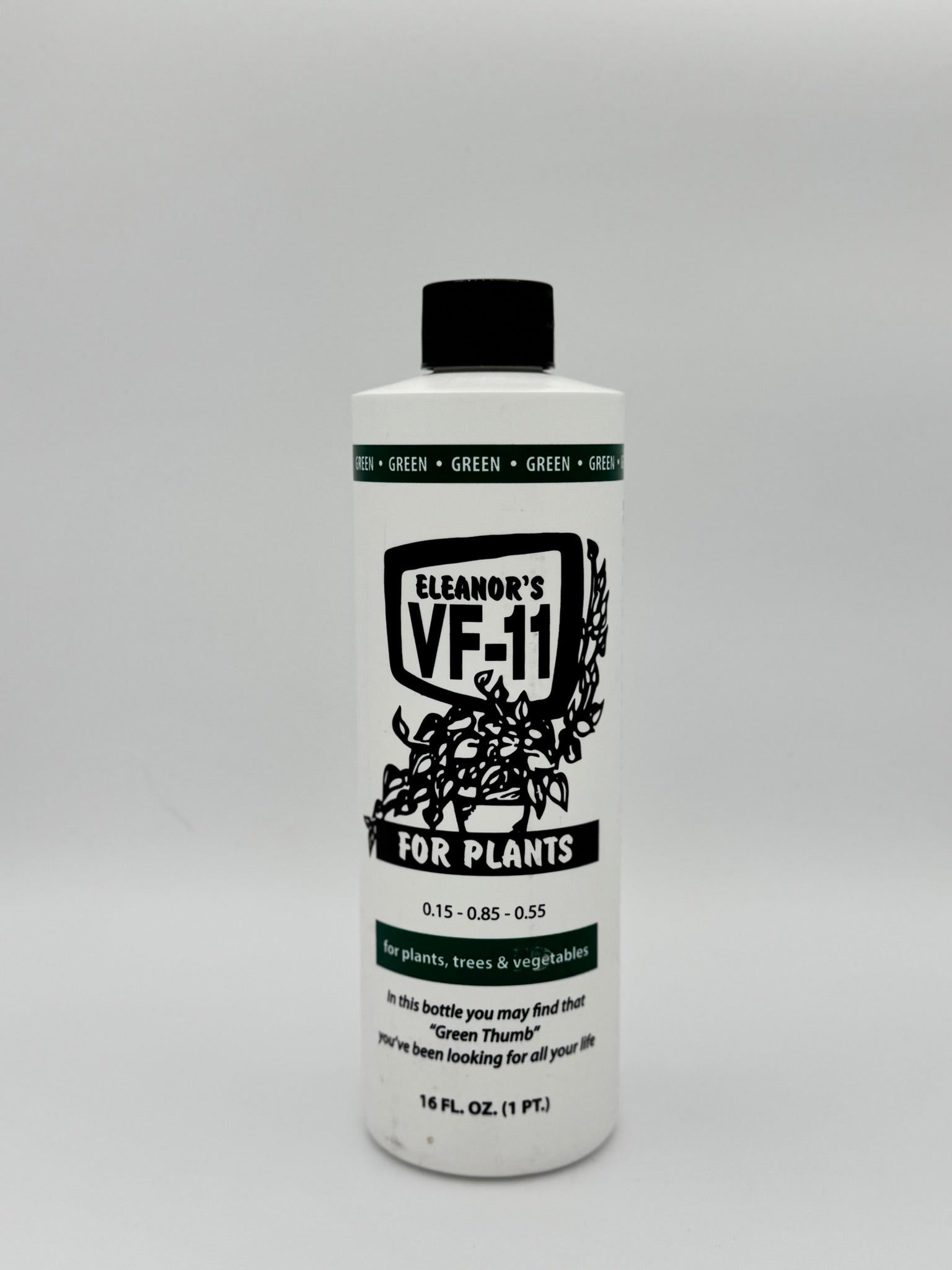 Eleanor's VF-11 Plant Food is an all purpose liquid concentrate plant food that can be used on all indoor and outdoor plants, shrubs, fruits and vegetables.